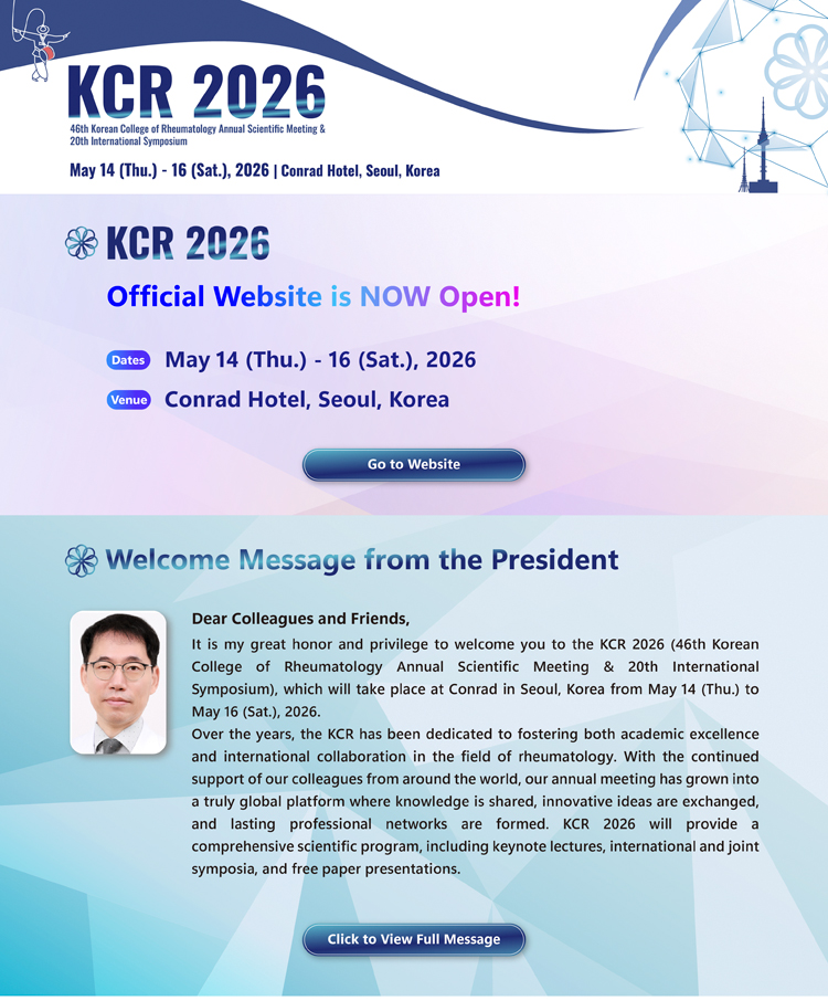 [대한류마티스학회] 제46차 대한류마티스학회 학술대회 및 제20차 국제심포지엄 (5/14(목)~16(토), 콘래드호텔)
