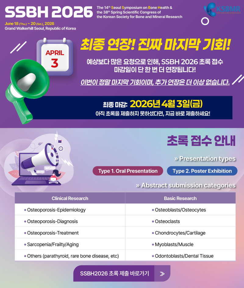 [국내행사] SSBH 2026 & 제38차 춘계학술대회 초록 접수 마감일
